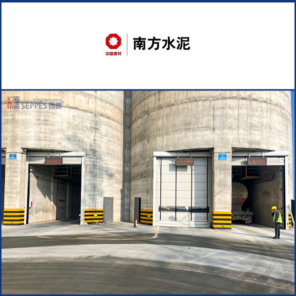 上图是:宜城南方水泥使用的堆积式快速卷帘门