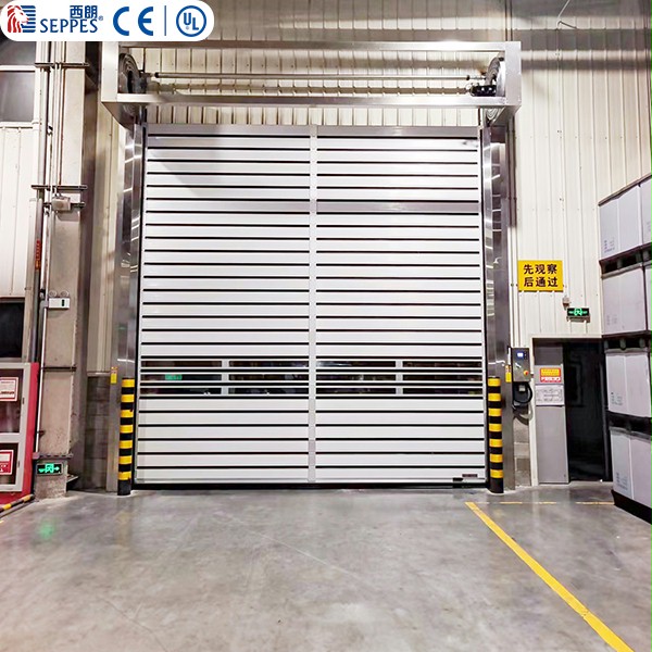 硬质快速卷帘门采用双面钢板内夹保温聚氨酯,轨道采用EPDM橡胶密封,实...