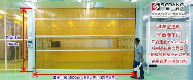 由于目前一些行业对于生产环境要求越来越高,基础的风淋室已经无法满足车间的洁净度要求,基础的风淋室两端都是推拉门,如果是货物运输设备以及车辆通过,就比较麻烦,需要有人员负责开关门的动作,不仅影响效率,对于防尘的效果也会下降。而快速卷帘门是新近兴起一种对通道有自动快速封闭要求的设施,它能在较短时间(一般为几秒钟)内打开通道,使人员或物流通过后又自动快速将通道封闭,它适于各个行业货淋室、通道隔断、洁净室等对洁净度有较高要求的场所。