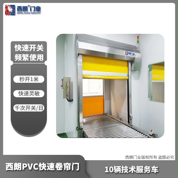 传输带用的南通快速门用在很小的传递窗口上,尺寸也很小,一般宽高都在1米之内,大一点的话,是1米多,按照西朗的快速门的速度,1秒开启,1秒关闭,每天可以运行上千次,按照这样的节奏,隔离的同时也可以提高生产产能。