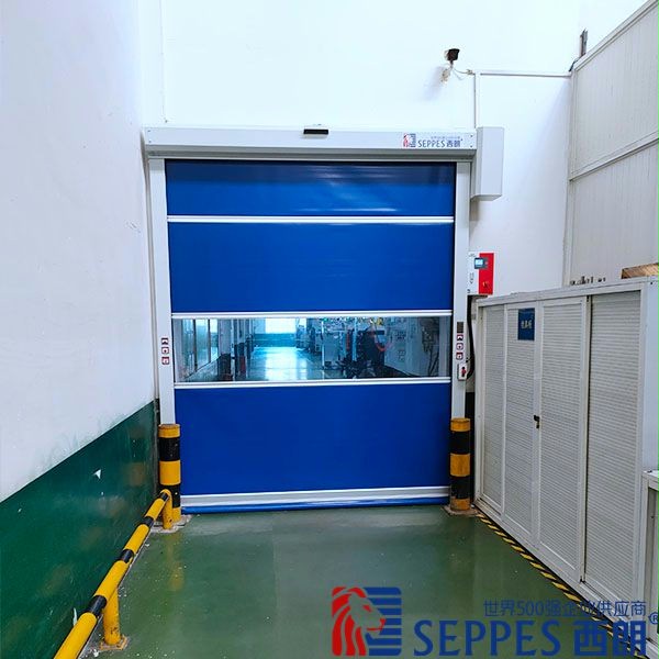 PVC快速卷帘门使用在精密制造车间,加上雷达感应,人车可自动进出车间内外,并且达到无尘洁净、防蚊防虫、保温恒湿、隔离降噪的生产环境。西朗PVC快速卷帘门是软质门帘,中间有多个铝合型材抗风肋条,抵御车间内部基本的过堂风压,6级以上。