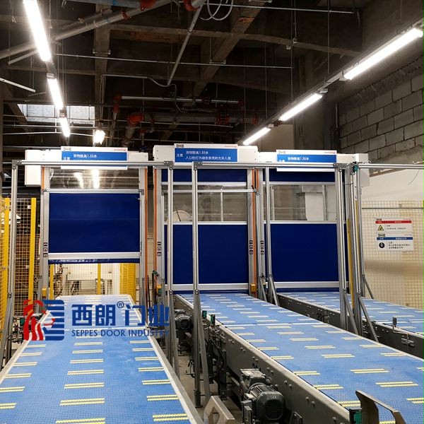 一是快速卷帘门加添感应装置,可自动识别传送物体,实现快速升降,物体离开后,也快速关闭。