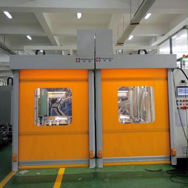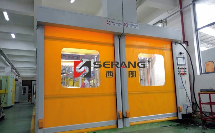 机器人手臂一般配置面的快速卷门,面积较小,一些机械手臂工作是需要电焊工作的,在这种电焊工作的快速门,需要注意两点: