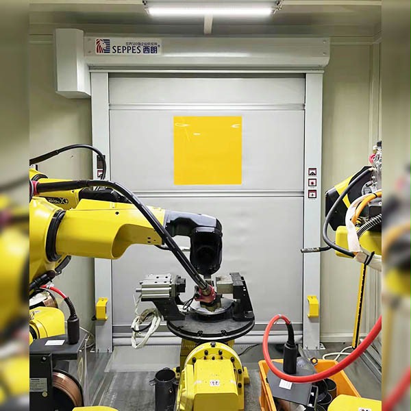 那在焊装车间、焊接机器人设备上安装西朗快速门卷帘门,它的门帘具有防弧光、防电焊作用,只容许可见光透过,过滤掉有害的紫外线;并且防止火花、烟气、碎屑的飞扬,保护了工作人员的,防止火灾的发生。不仅如此,西朗快速门卷帘门的密封隔离性能,降低因机器焊接工作带来的噪音分贝,减轻了噪音带来的伤害。