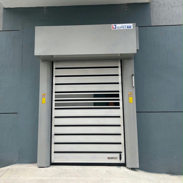 上图是:方位无菌包装在户外使用的硬质快速卷帘门