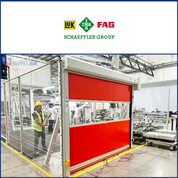 上图是:舍弗勒设备间安装西朗防护快速卷帘门