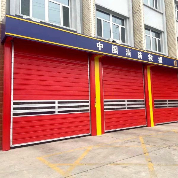 消防大队、消防站、119消防救援中心是为人民生命财产安全而设立的,消防车出警速度决定着人民生命安佺,也取决于消防车库的开启速度;为了在接到警铃立即出警,就得匹配开关速度很快的涡轮快速卷帘门,5米高的车库门开启只需5秒钟。