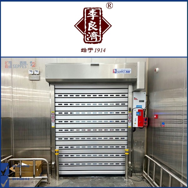 上图是:天灵中药车间使用的硬质快速卷帘门